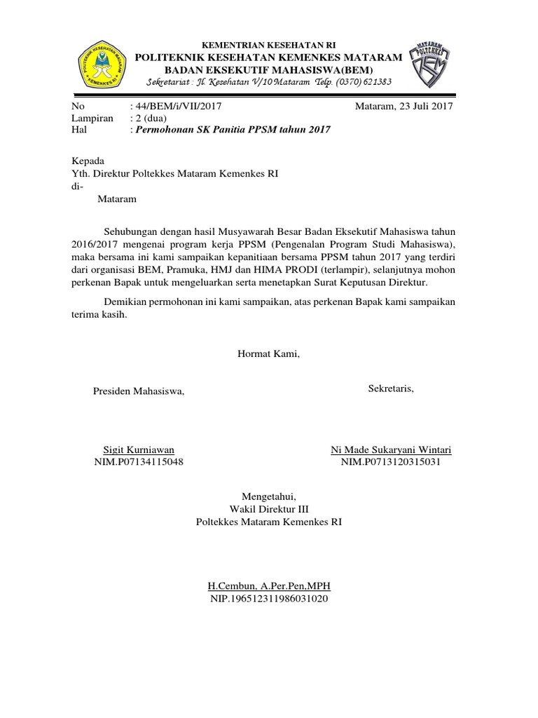 Surat permohonan dan keterangan yang dikeluarkan berdasarkan surat edaran mahkamah agung ini mengacu panitia pelaksana kegiatan memperingati diesmaulidiyah. Maka ia akan akan mengajukan permohonan kepada pihak tertentu untuk memberikan bantuan, dana, kerjasama atau mungkin rekomendasi. Contoh sk untuk pengangkatan bem. 13 contoh surat permohonan dana izin bantuan kerja dll benar. Documents similar to surat permohonan sk pengurus bem 2018.